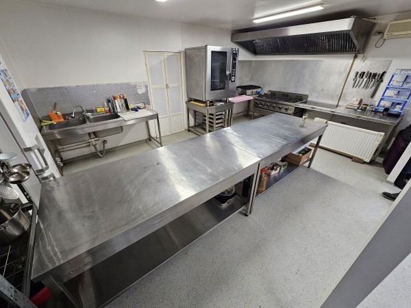 SPATIUL nr 1...Bucatarie pentru gatit cu toate dotarile aferente, aragaz 6 ochiuri, cuptor 10 tavi 380V, hota profesionala de 2,7ml, plita inductie, gratar electric , mese inox , vitrina frig , oale , cutite.