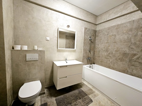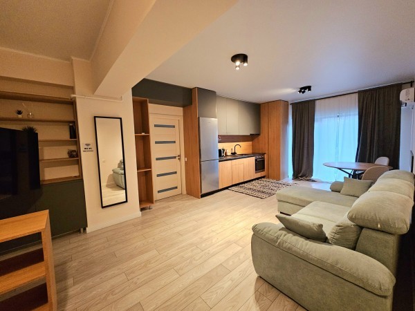 Finisat complet, cu materiale de calitate; dotat cu centrala termica si sistem de incalzire in pardoseala, aer conditionat, gresie, faianta, parchet, termopan, usa metalica, usi interioare mdf. Mobilat si utilat complet.
