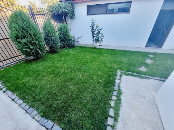 Curtea este amenajata complet, gazon, brazi, tuia. Curtea beneficiaza de sistem automatizat de irigare a gazonului.