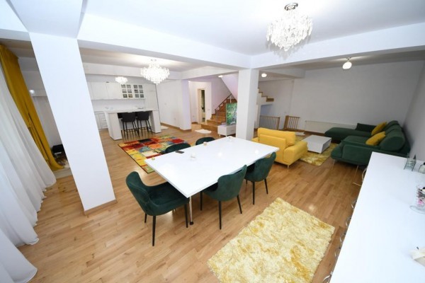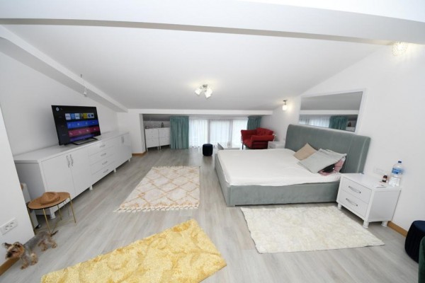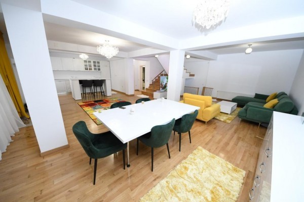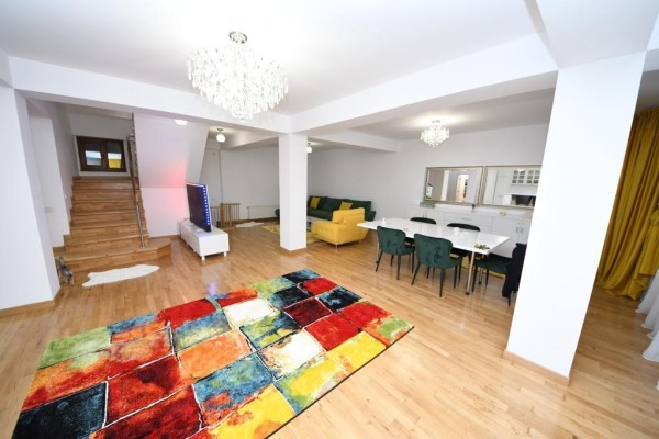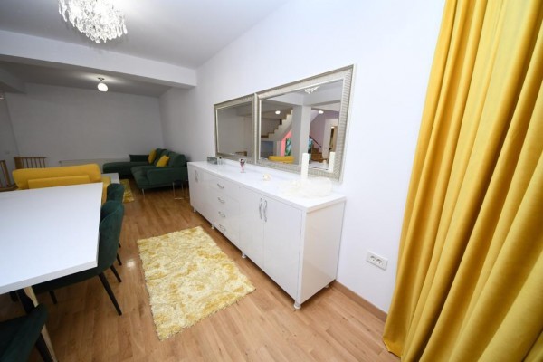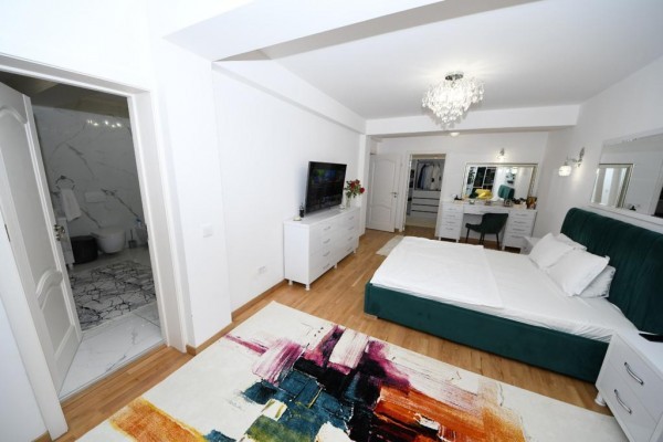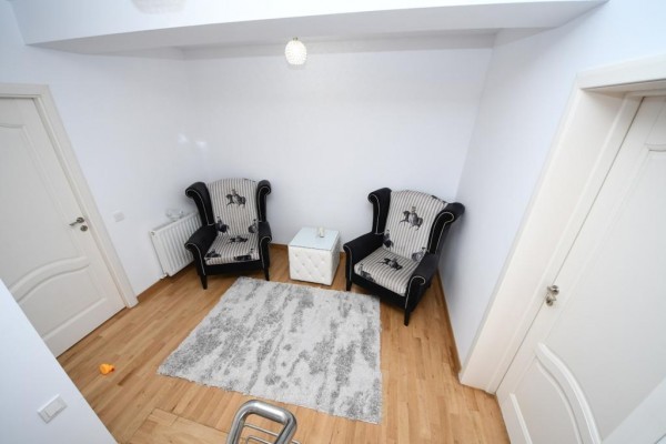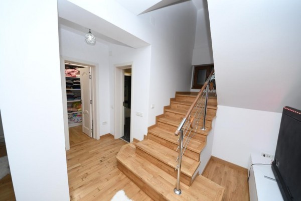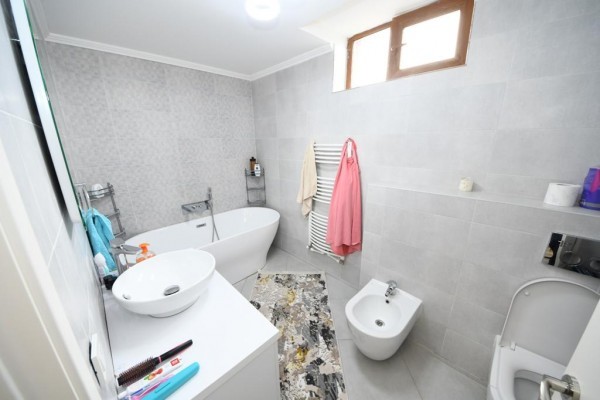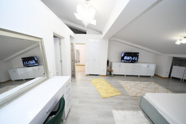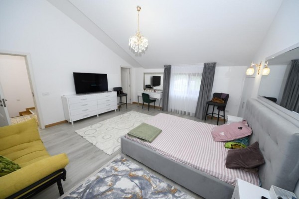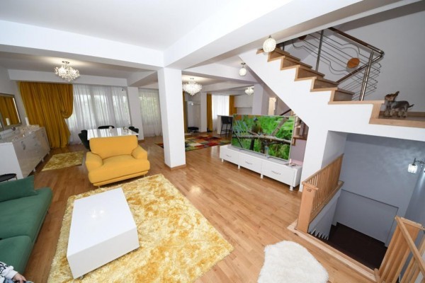 Casa este construita din caramida in anul 2005! Incalzirea se face cu centrala termica proprie pe gaze! Imobilul este compartimentat astfel:Demisol (cu incalzire in pardosealà,bucatarie ,baie ,camera tehnica,sauna ,grup sanitar,sala sport), Parterul (living cu bucatarie, camera depozitare,baie), Etajul 1 (dormitor matrimonial cu baie proprie ,dressing si terasa foarte spatioasa:dormitor cu baie proprie) si Etajul 2:(doua dormitoare fiecare cu baie proprie dressing/loc depozitare).