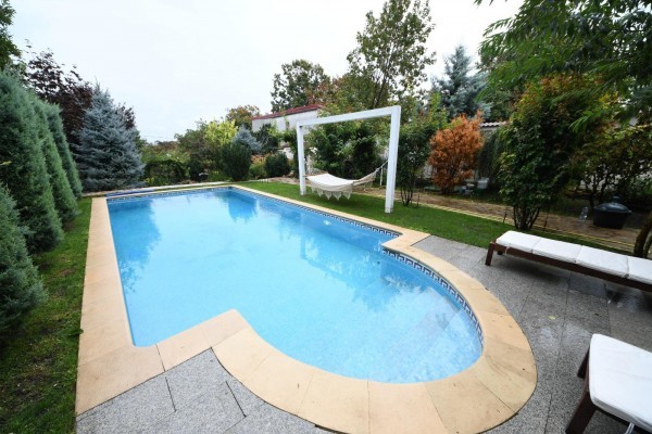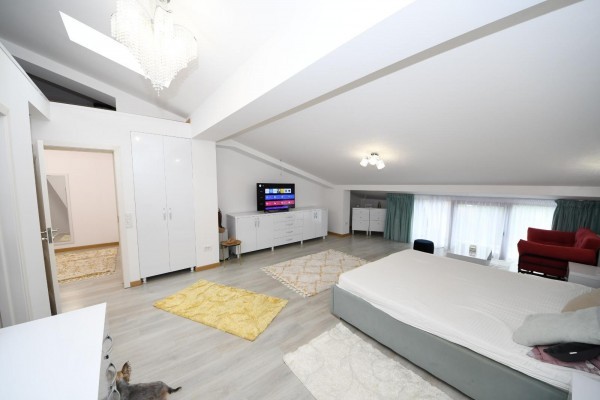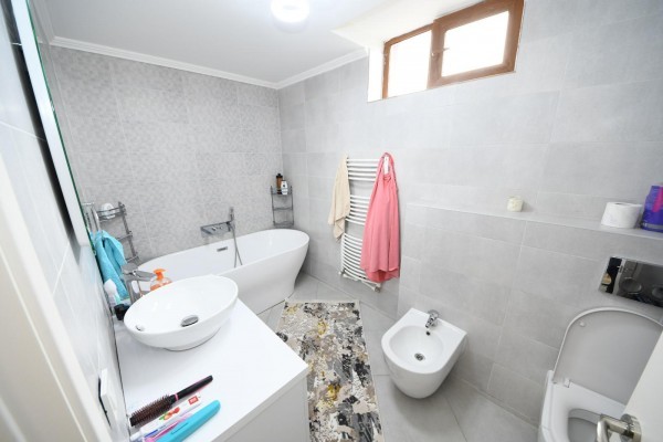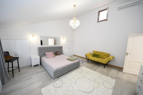 Finisata complet atat la interior cat si la exterior. Dotata cu centrala termica si sistem de incalzire in pardoseala. Curtea este amenajata complet, pe 3 niveluri, cu sistem de irigatie ,gazon ,copaci ,flori ,piscina ,iaz cu pesti si un rau ce strabate gradina.