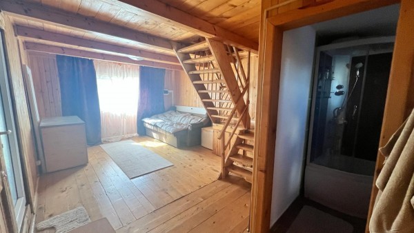 Casa este construita din lemn, stil cabana! Imobilul este compartimentat astfel: Parter ( living, baie, bucatari/camara) si Mansarda (2 dormitoare, balcon).