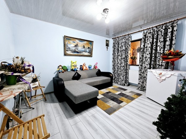 Constructia este finisata complet atat la interior (gresie, faianta, parchet, termopan, usi interioare mdf), cat si la exterior - izolata cu polistiren de 10 cm; acoperis- tabla Lindab.