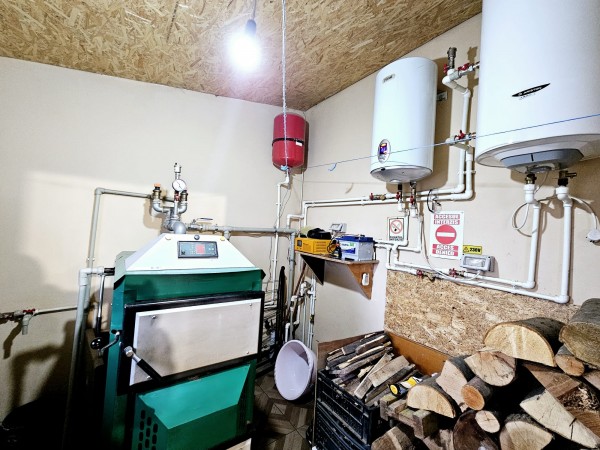 Casa beneficiaza de centrala termica - pe lemne, apa curenta, curent electric, fosa septica. Curtea este amenajata.
