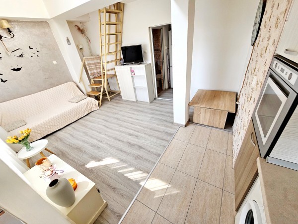 Apartamentul este utilat cu masina de spalat, plita pe gaz, cuptor, combina frigorifica, televizor.