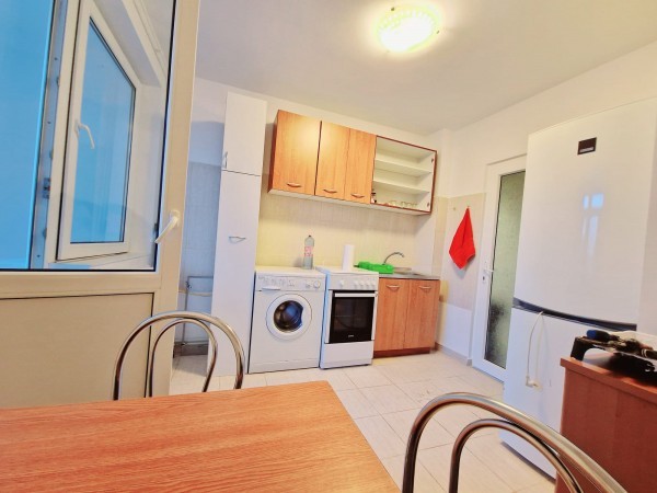 Acest apartament de închiriat are 80 mp și se află la etajul 1 al unui bloc din beton cu 4 nivele. Este compus din 3 camere, o bucătărie separată un hol , un grup sanitar și un balcon. Apartamentul este mobilat complet și dotat cu mașină de spălat, frigider și televizor.