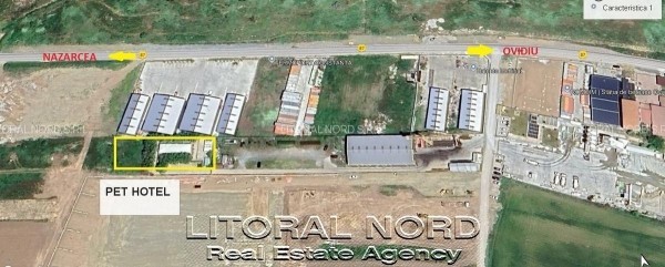 Ovidiu, Pet Hotel 5 * pentru caini si pisici, situat la aproximativ 900m de intrarea pe autostradă, constructie 2018, cu suprafata de 251 mp construiti si teren intravilan in proprietate de 1.417mp.