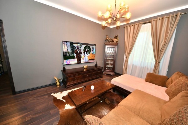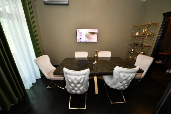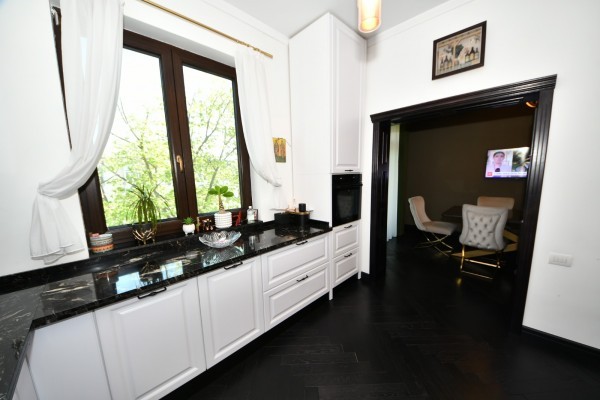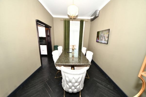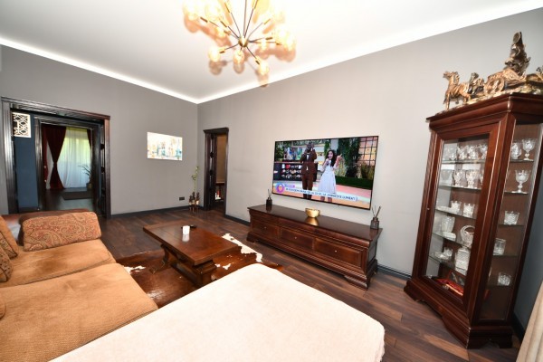 Renovat, modernizat complet, cu materiale si finisaje de calitate superioara, realizata sub indrumarea unui designer. Dotat cu doua centrale termice si sistem de incalzire in pardoseala, cinci aparate de aer conditionat, parchet din lemn masiv (de doua tipuri), usi si tocuri din lemn masiv, varuri decorative, tavane extensibile, piatra naturala, vopsea epoxidica, marmura, granit.