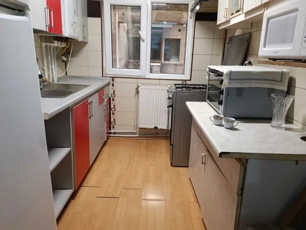 Apartamentul este amenajat si are 3 camere + 1 living, 1 bucătărie, 1 baie, hol, balcon 7m inchis cu tamplarie termopan.