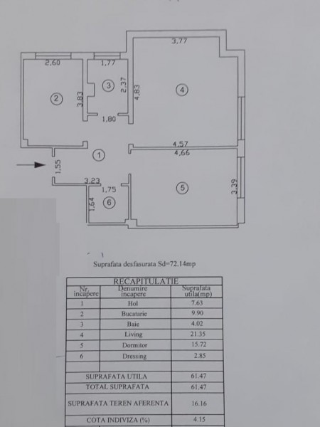 Spatios, decomandat, varianta cu o suprafata desfasurata totala de 72, 14 mp.