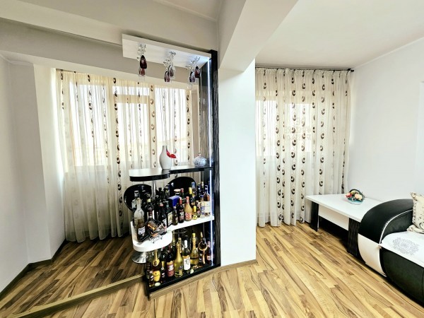 Apartamentul este renovat, prezinta imbunatatiri, este dotat cu centrala termica, aer conditionat, izolatie termica exterioara, gresie, faianta, parchet, termopan (cu rulouri exterioare), usa metalica, usi interioare mdf. Toate utilitatile sunt racordate separat, inclusiv apa - contract direct cu Apa Canal.