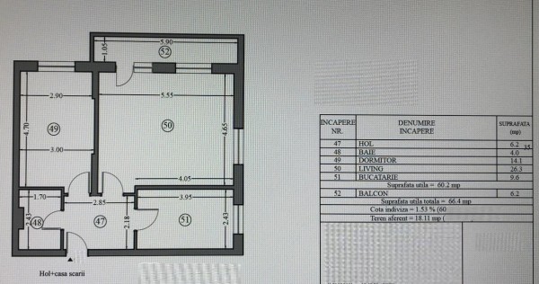 Spatios, decomandat, varianta cu o suprafata totala de aprox 66 mp.