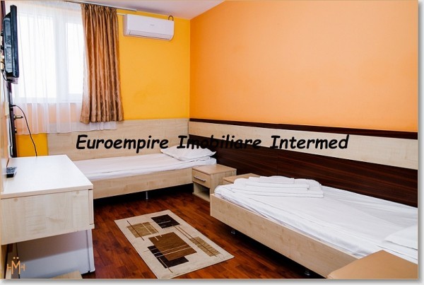 EXCLUSIVITATE Agentia Euroempire Imobiliare va propune spre VANZARE, in localitatea Costinesti, judetul Constanta, un hotel, amplasat pe un teren generos de 525 mp, include si o parcare privata de inca 525 mp situata peste drum, oferind astfel suficient spatiu pentru oaspeti si personal. Hotelul este construit in anul 2005 si se vinde complet mobilat si utilat, fiind o oportunitate excelenta de investitie.Hotelul dispune de 32 de camere duble si 5 suite spatioase pentru 4 persoane fiecare. Dintre acestea, 10 camere beneficiaza de balcon iar restul camerelor sunt fara balcon. Toate camerele sunt echipate cu mobilier complet ( paturi cu saltea, dulapuri, TV) si dispun de bai proprii si aer conditionat. La parterul cladirii se gasesc receptia, 2 birouri situate in imediata apropriere a acesteia, un bar, o zona de lobby, o toaleta, 2 camere destinate personalului si o bucatarie complet utilata. De asemenea, hotelul se mandreste cu 2 terase mari exterioare, ideale pentru relaxare in aer liber. Hotelul este echipat cu o centrala pe gaze care asigura apa calda si rece pentru intreaga cladire. Fiecare hol include un office dedicat dpozitarii lenjeriilor si prosoapelor, facilitand astfel intretinerea si curatenia zilnica. Pretul vanzarii este de 1.200.000 euro. Pentru mai multe detalii despre oferta sau vizionare, puteti sa ne contactati, la nr de tel 0752.194.793.