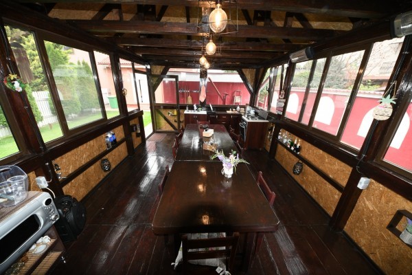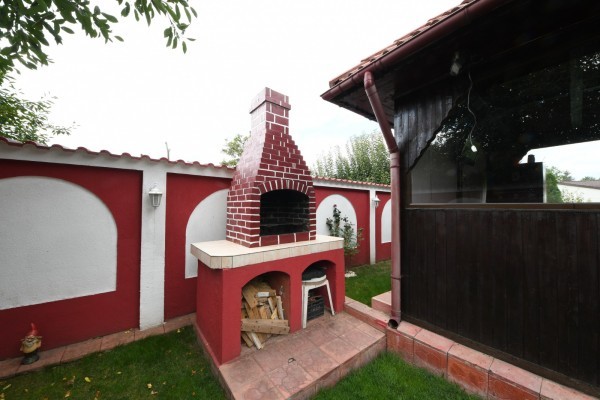 Fata de cele mentionate mai sus aceata proprietate mai beneficiaza de garaj , foisor din lemn masiv acoperit cu tigla, gratar, 2 Beciuri ( 1 beci pe suprafata garajului, 1 beci pe suprafata bucatariei).