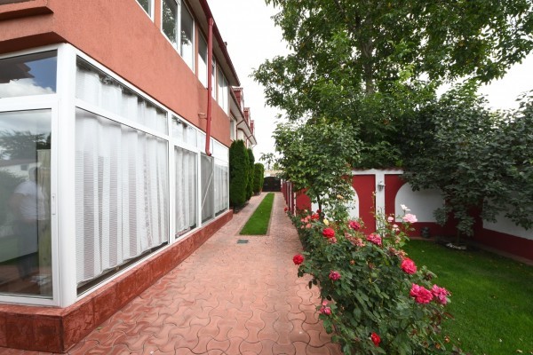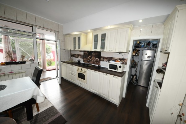 Proprietate beneficiaza de toate utilitatile (gaz, apa, canalizare, curent electric). Terenul (proprietate) este in suprafata de 514 metri patrati, cu o deschidere la strada de 11 metri liniari.Curte amenajata, gazon, pomi fructiferi. Instalatie automata de irigat pentru gazon.
