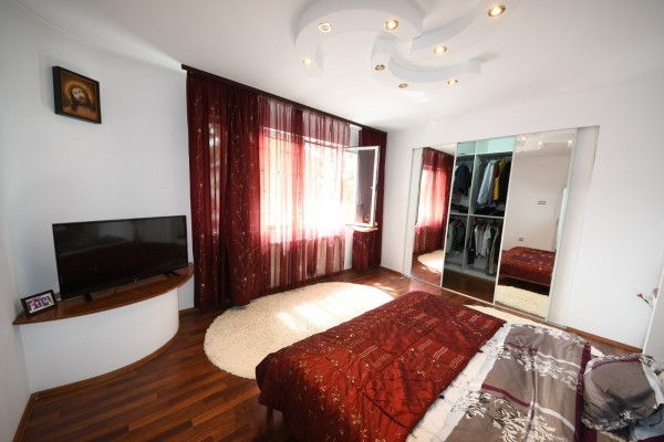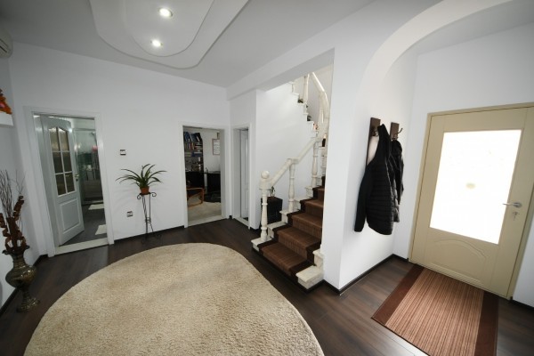 Finisata complet, amenajata; dotata cu centrala termica (pe gaz 40 kw), 2 instalatii de aer conditionat, gresie, faianta, parchet, termopan, usi interioare din lemn, izolatie termica exterioara cu polistiren (10 cm). Scara interioara si mana curenta din marmura.