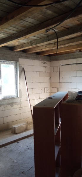Casa este construita din BCA Ytong! Stadiul constructiei este la rosu catre gri, asa cum se poate observa din fotografiile atasate!