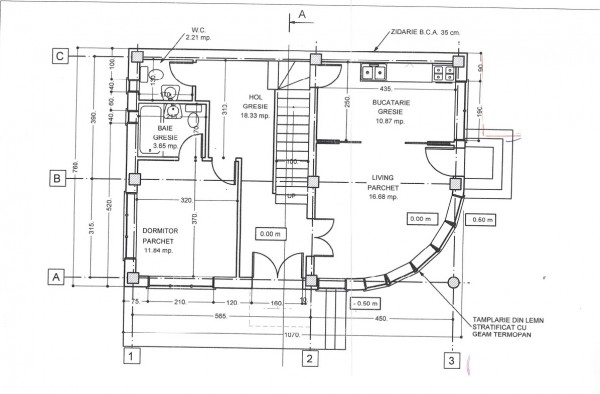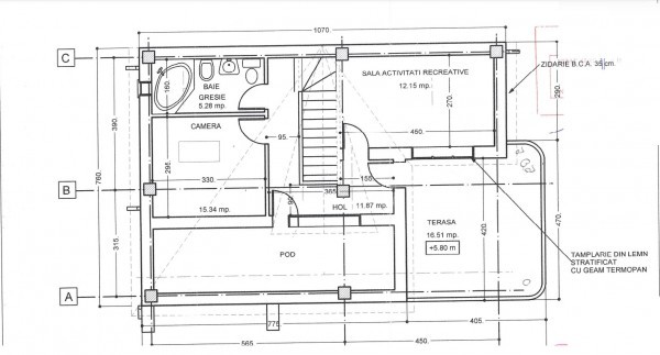 La fstadiul actual necesita renovare totala. Beneficiaza de izolatie termica exterioara, tamplarie pvc cu geam termopan, centrala termica.