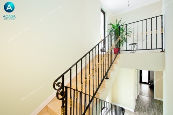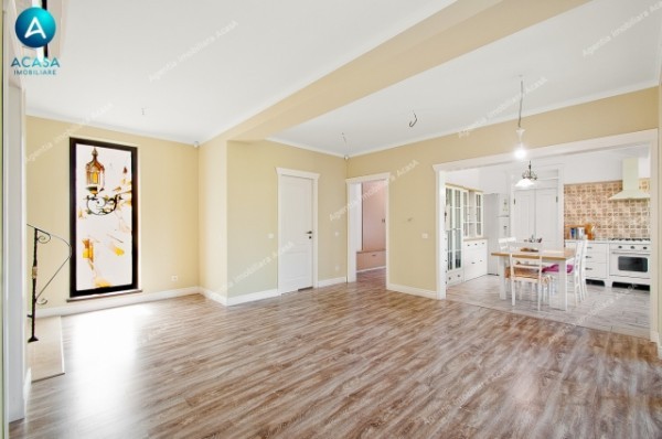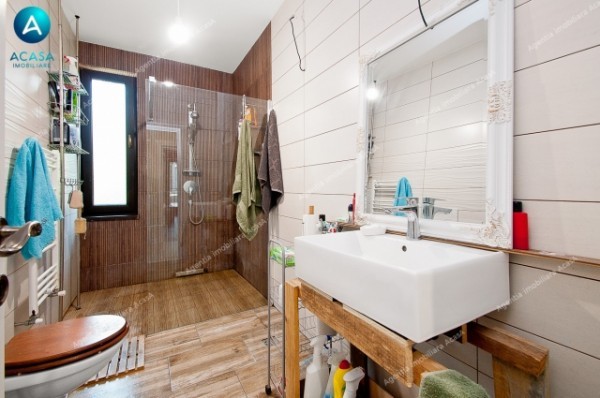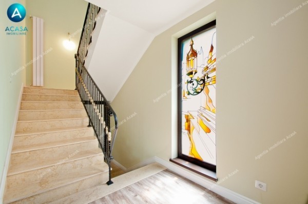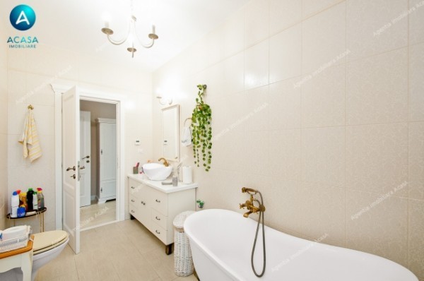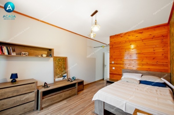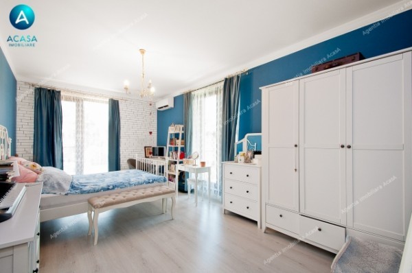 -utilata complet (2 buc aer conditionat Midea 12000 BTU la parter + 3 buc AC Midea 9000 BTU la etaj, cu comanda individuala din smartphone prin aplicatie, combina frigorifica Beko 500 litri, aragaz stil vintage pe gaz, cuptor stil vintage electric si hota stil vintage, cuptor microunde Samsung, televizoare: LCD Samsung 75 inch (diagonala 2m), Samsung 55inch diagonala 140cm, LG 32 inch diag. 80cm in bucatarie, aspirator Karcher WD3, espressor DeLonghi, alte aparate de uz casnic de brand, etc.)