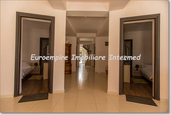 COD VV 1813 Agentia Euroempire Imobiliare va propune spre vanzare, in Mamaia Nord, o vila compartimentata P+E+M, avand suprafata utila de 450mp, suprafata terenului de 500 si deschiderea de 20ml. Imobilul include 10 camere modern mobilate, mentinute impecabil, fiecare camera avand baie proprie. Receptia si 4 camere duble se afla la parter. Etajul 1 cuprinde 2 camere duble si doua camere triple, iar la mansarda sunt doua camere triple spatioase si o terasa amenajata. Vila include si un apartament separat de doua camere cu bucatarie, baie si terasa proprie. Spatiu verde cu loc de joaca pentru copii, o bucatarie comuna si o a doua tersa acoperita si cu gratar sunt disponibile pentru confortul dumneavoastra. Se vinde mobilată , utilată si dispune de centrala pe gaze, toate incluse in prețul de vânzare. Pretul imobilului este de 549.000 Euro. Pentru mai multe detalii despre oferta si/sau vizionare va rugam sa ne contactati la nr. de telefon: 0752.194.793.