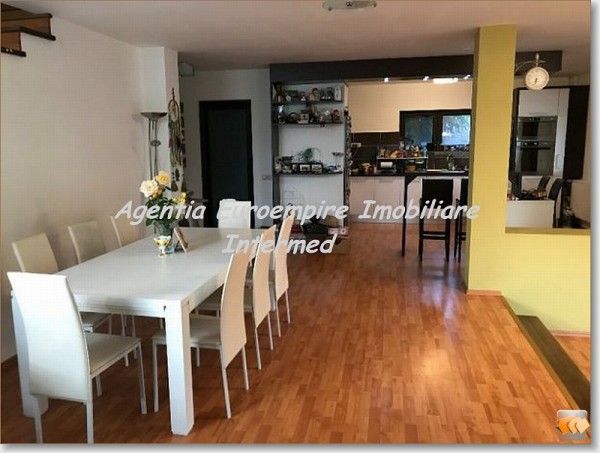 COD IV 1296 Vila P+M de inchiriat in Ovidiu Sud, suprafata construita de 165 mp, suprafata desfasurata 338 mp, suprafata teren 433 mp, la parter: hol, living, bucatarie, baie, garaj, terasa acoperita, la etaj: 4 camere, 2 bai, balcon, terasa, hol, mobilata utilata complet, se inchiriaza la pretul de 1200 euro/luna + 1 luna garantie.