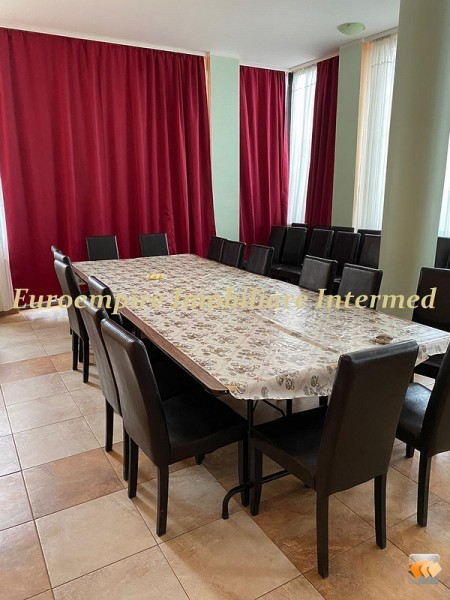 Agentia Euroempire Imobiliare Intermed va propune spre achizitie o pensiune deosebita, la malul marii, cu acces facil la plaja, in Mamaia Nord, situata intr-o zona de interes turistic, acest imobil poate fi alegerea ideala ca investitie cu potential turistic pe toata perioada anului deoarece poate functiona si spalatoria cu care proprietarul detine contracte. Proprietatea se desfasoara cu regim de inaltime P+3 si este dispusa pe o suprafata de 1476.57 mp, teren de 1250 mp, suprafata utila de 1166.45 mp, deschidere 20/65 ml. Pensiunea este compartimentata astfel: la parter receptia ( sala primire), restaurant, bucataria utilata cu tot necesarul pentru a functiona, 2 grupuri sanitare, un vestiar pentru angajati si spalatoria, la etajul 1 avem 11 camere din care 9 sunt camere duble si 2 apartamente cu 2 camere mobilate si utilate , bai proprii si balcoane la fiecare camera, etajul 2 compartimentat identic cu etajul 1 , in oglinda, la etajul 3 se afla 3 apartamente mobilate si utilate lux. Pensiunea dispune si de o terasa circulabila de circa 350 mp , cu o vedere panoramica la mare, canal, lac. Aceasta proprietate se preteaza pentru cei care vor sa obtina venituri , atat in regim hotelier cat si folosind spalatoria in mod permanent. Deasemenea, in proximitatea pensiunii gasim restaurante, cafenele, supermarket-uri. Proprietatea dispune de toate utilitatile : apa, curent, canalizare, gaze. Structura este de P+3E ,din 2007, avand curte interioara si locuri de parcare. Constructia este facuta cu cele mai bune materiale premium de pe piata. Un avantaj major este dat faptul ca are amplasat si loc de joaca, ceea ce constituie un avantaj pentru familiile cu copii, terasa cu barbeque, foisor, beci. Intreaga proprietate se vinde mobilata si utilata cu tot ce e necesar pentru a se continua afacerea. Agentia va ofera consiliere si asistenta permanenta pana la semnarea contractului de vanzare cumparare. Pretul pensiunii este de 850.000 euro.