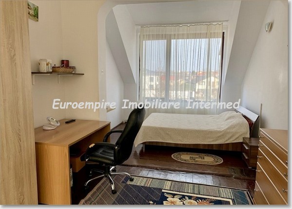 - Etaj: 2 dormitoare, hol, 2 băi (baie cu cadă si baie cu WC), terasă acoperită. Subsolul are o suprafata generoasa de 40 mp. Vila se vinde mobilata si este echipata cu centrala proprie pe gaze. Acoperisul a fost inlocuit recent si are garantie 30 ani.